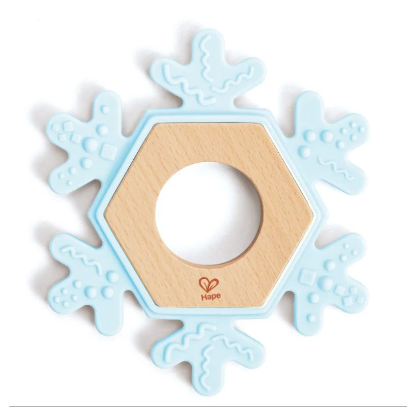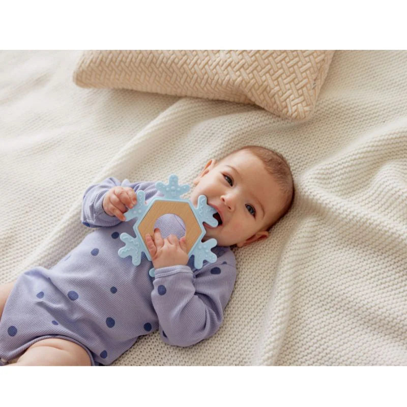 Un encantador mordedor para bebés con forma de copo de nieve. Su textura ayuda a masajear las encías y cautiva a los bebés con su diseño original.