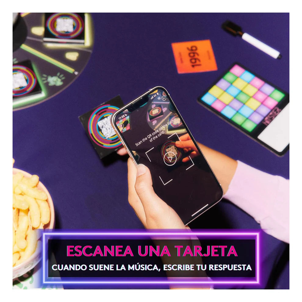 Prepárate para girar la bola de disco para revelar la categoría, escanea la tarjeta y deja que suene la música. Adivina la década, identifica cantantes o grupos, elige el año exacto o determina si es antes o después de la década de 2000.
