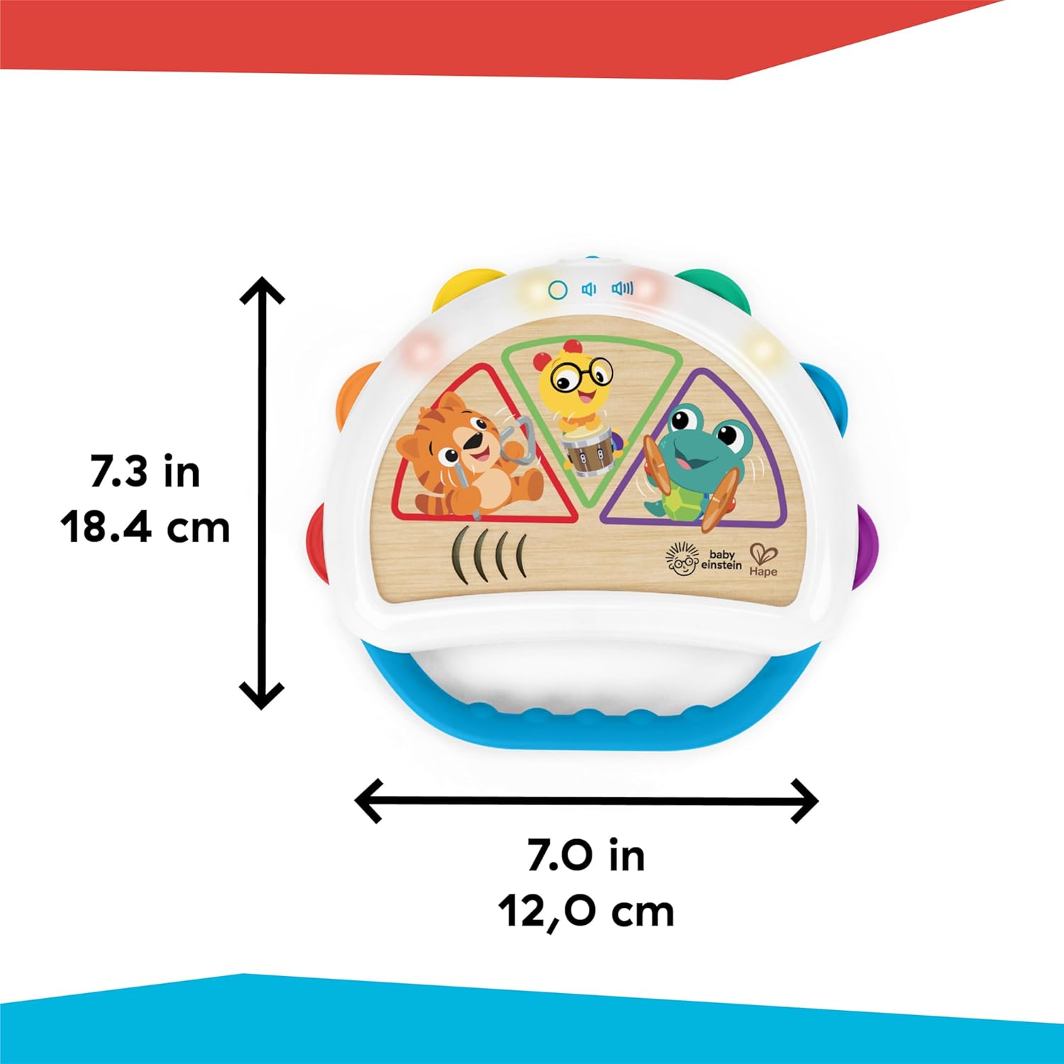 Cada golpecito y sacudida inspira el descubrimiento musical y de causa y efecto del bebé con la pandereta Tap & Shake de la colección Magic Touch de Baby Einstein + Hape. Este instrumento fácil de agarrar atrae al bebé con más de 30 melodías y sonidos, ¡y luces que bailan al ritmo! Ideal para transportarla, su superficie ultrasensible ayuda a que los golpecitos del bebé generen sonidos fácilmente para fomentar la exploración desde los 6 meses hasta los 3 años.